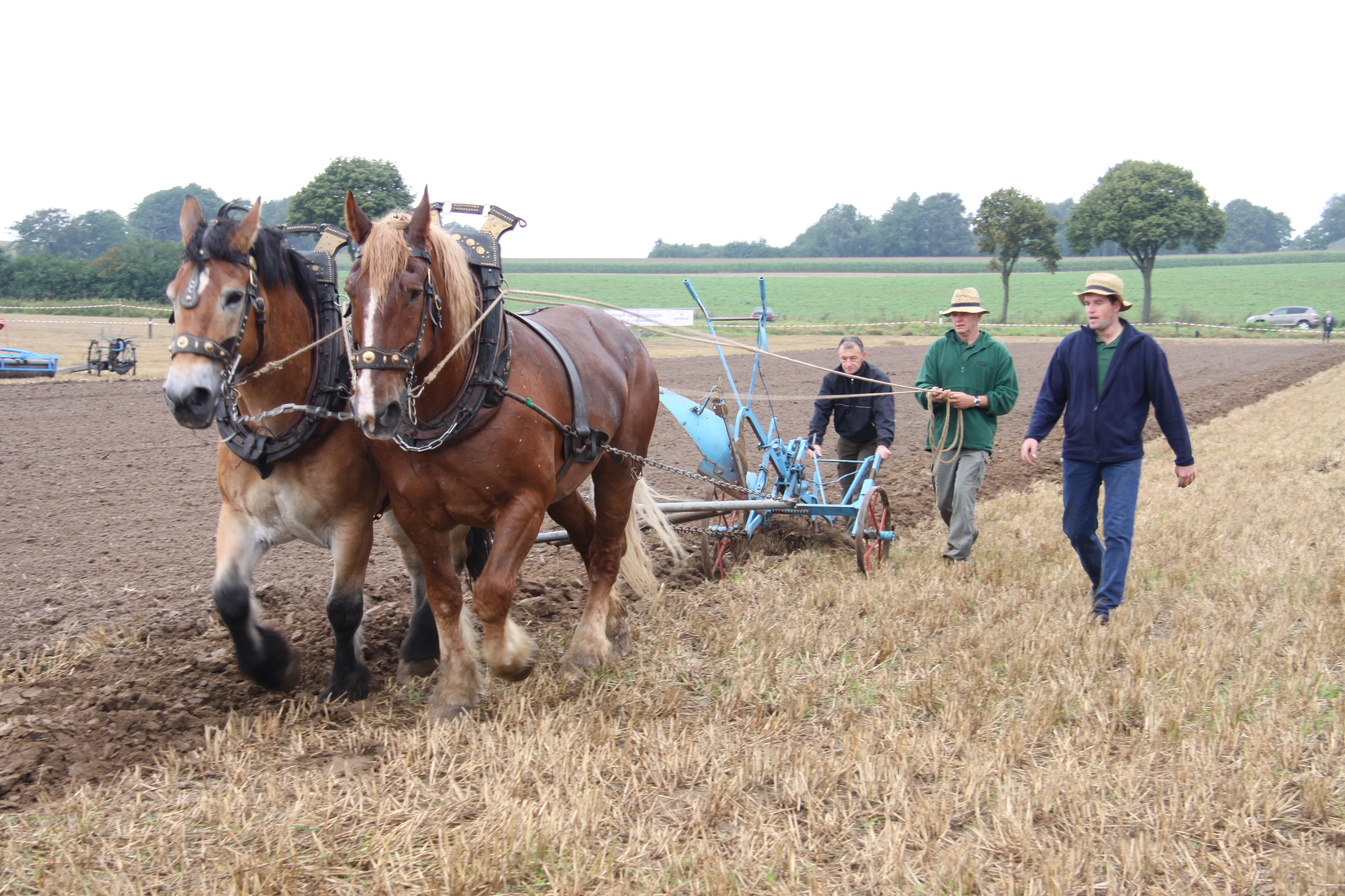 (v.l.)Thomas Martens, Gerd Ingenerf und Thomas Wirtz mit ihre Kaltblüern beim Pflügen)